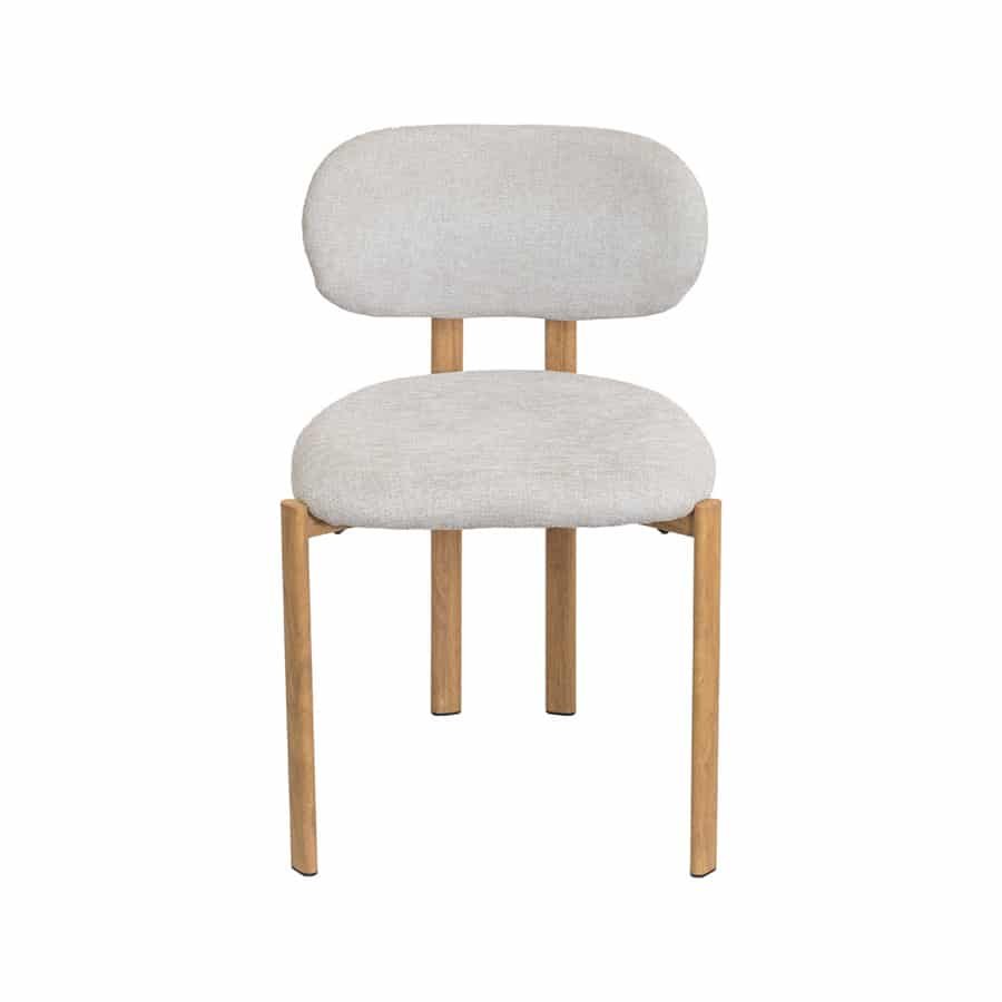 Cadeira Jari 4444 Almofadada Base metal cor madeira Linho cinza